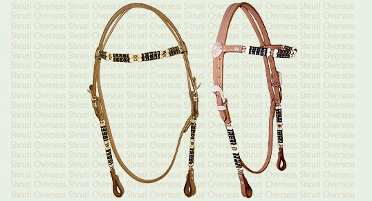 Western Headstall with Black and White beads decoration.